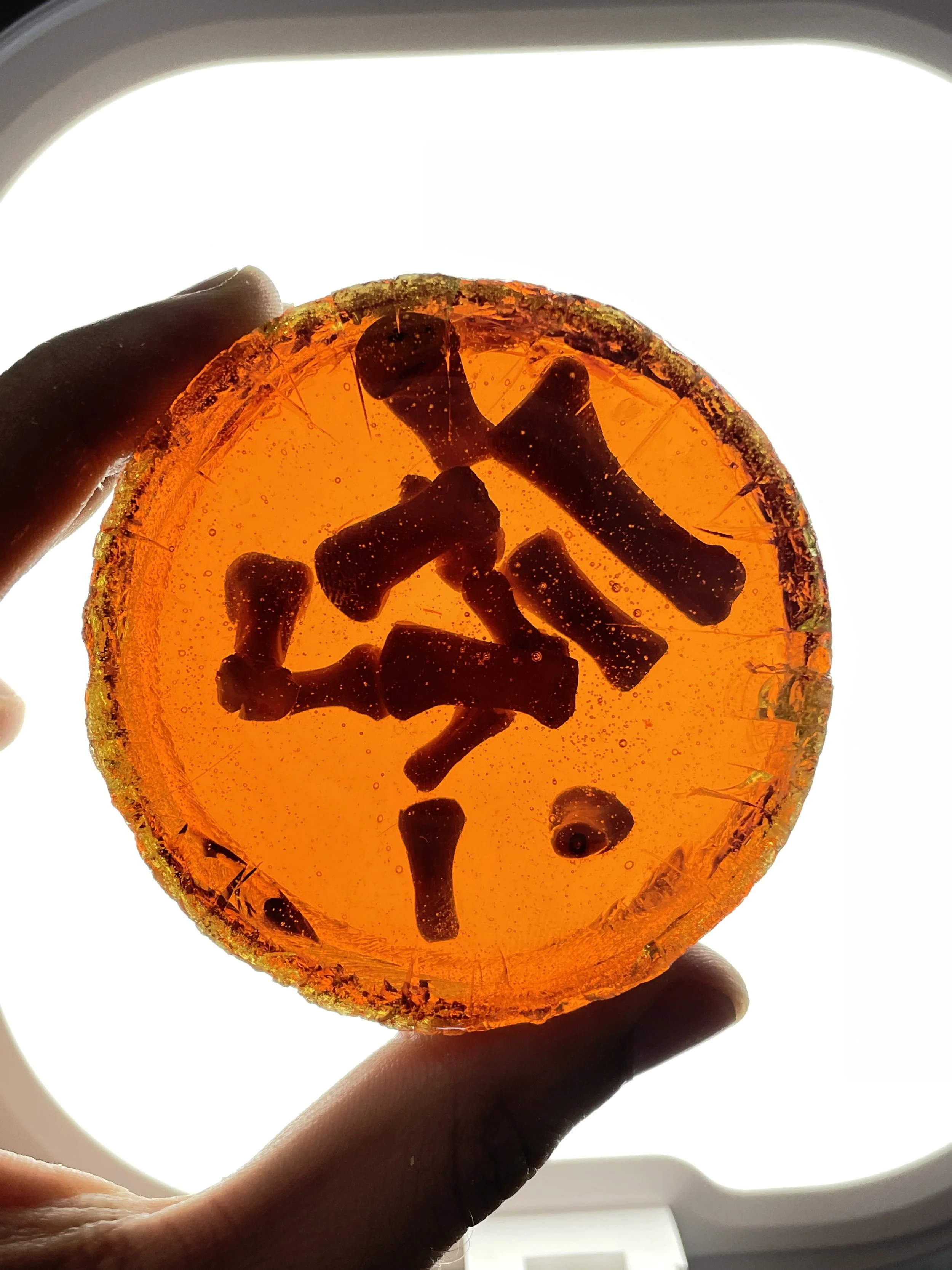 This exploration revolves around the materiality of amber, a resin produced by trees that aesthetically blurs the limites of organic/inorganic.